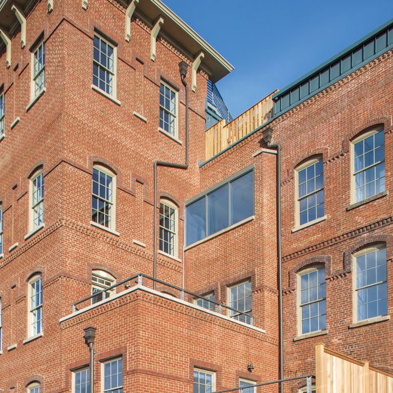 由於原始建築依靠日光進行照明,因此具有五個長翼,這些翼具有狹窄的平面圖,高高的天花板和高大的窗戶(總共超過700個),沿著每一側的長度運行。通過保留此功能,Watchcase的每個居民幾乎可以在家中的每個房間享受大量的自然光,Andersen®E系列窗戶和露台門成為指定的門窗。ODL作为Anderson的合作品牌,共同参与这项工作。